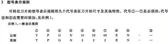 GB/T2076-2007 標(biāo)準(zhǔn)規(guī)定了切削刀具用硬質(zhì)合金或其他切削材料的可轉(zhuǎn)位刀片的型號(hào)表示規(guī)則。標(biāo)準(zhǔn)適用于切削刀具用硬質(zhì)合金或其他切削材料的可轉(zhuǎn)位刀片,還適用于鑲有立方氮化硼及聚晶金剛石的刀片。