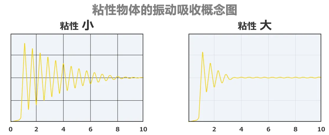 僅使用彈性(彈簧)時、即使振動源的振動停止、物體因彈性(彈簧)所蓄積的力而繼續(xù)移動、因此需要吸收振動的粘性(阻尼器)、粘性(阻尼器)需要彈性(彈簧)伸縮、這是由于其運動將振動轉(zhuǎn)換為熱量。