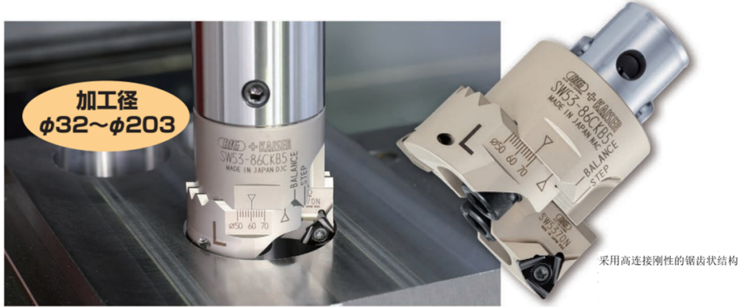 SW粗鏜頭和刀片座之間采用高剛性的齒狀連接結(jié)構(gòu),特別適合于大切深、高進(jìn)給的高效率加工。