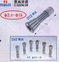 現(xiàn)在筒夾刀柄種類林林總總,日本恩司迪公司推出了一項筒夾刀柄新技術----超彈性彈簧筒夾刀柄,它的特點1個筒夾擰歸納法范圍量可達2mm,為什么說它是超彈性呢,原來這種筒夾刀柄有12個分割,無論是鉆頭,銑刀,絲錐都要通用,有106種尺寸鉆頭僅用6個類型的筒夾就可以夾緊,適合高剛性同步攻絲,它的構造 也很簡單。由于它的通用性,所以筒 夾的種類很少,管理起來也相對容易得多,例如D12超彈性彈簧筒夾,它的長度只有70mm,直徑2.5至直徑13的刀具全都可通用這款筒夾,它的最重要優(yōu)點就是全夾持范圍,保證高精度,它不僅具有筒夾最適合的彈性,同時削減筒夾所需數至1/10.如果使用這種超彈性筒夾刀柄,刀具的壽命比普通筒夾使用多3倍。