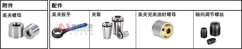 1. 附帶螺母。軸向調(diào)節(jié)螺絲、夾套、扳手請(qǐng)另行訂購(gòu)。