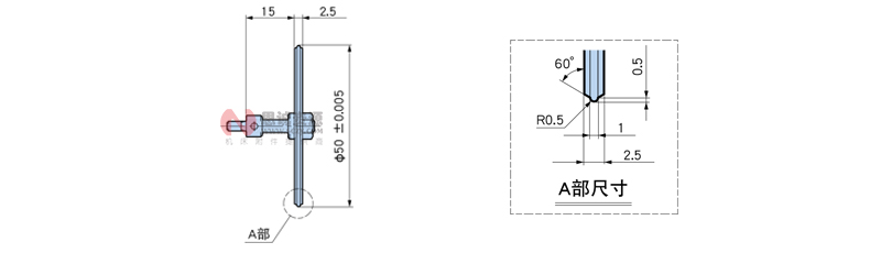 測(cè)頭部分采用M3螺紋連接式,可以分離,因此在側(cè)頭損傷時(shí)或根據(jù)工件形狀,可更換測(cè)頭。