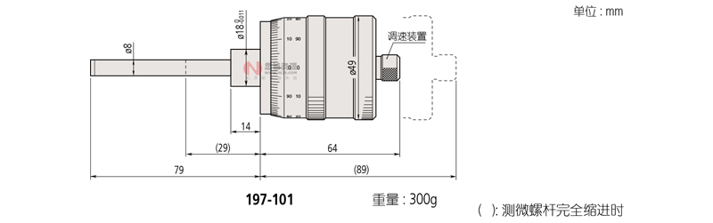| 197-101 | 0 - 50mm | 0.005mm | ±5μm | 18mm | 直柄型 | 平面 (硬質(zhì)合金頭) | 1mm | 雙向刻度 |