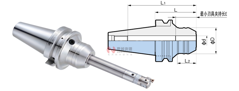 | 型號 | φd | φD | L | L1 | L2 | 最小刃具夾持長 E | 重量 (kg) |