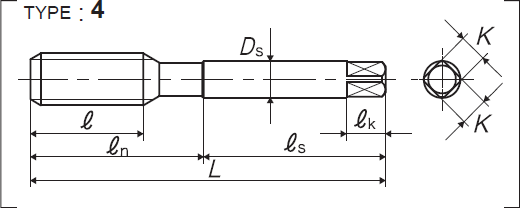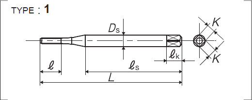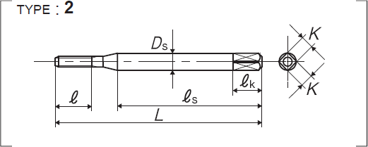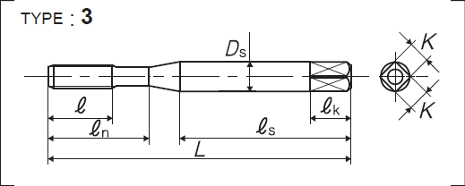 | 全長 | 吃入部+完全螺紋部的長度 | 螺紋部長 | 頸下長 | 柄部長 | 柄徑 | 四角部寬 | 四角部長 |