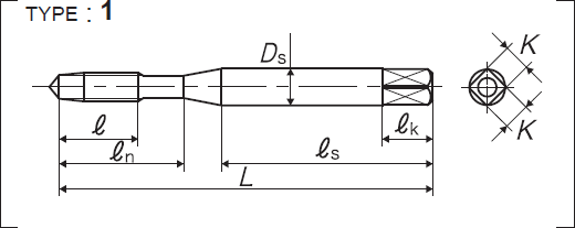 | 全長 | 螺紋部長 | 頸下長 | 柄部長 | 柄徑 | 四角部寬 | 四角部長 |