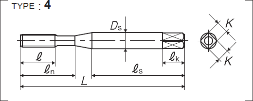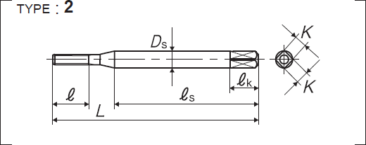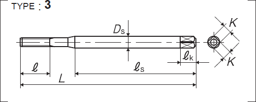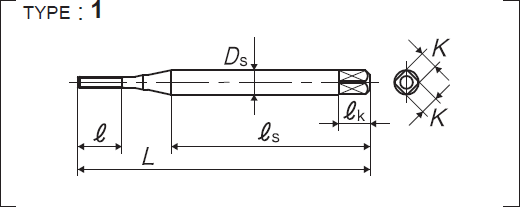 | 全長 | 螺紋部長 | 頸下長 | 柄部長 | 柄徑 | 四角部寬 | 四角部長 |