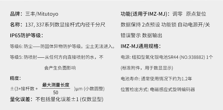思誠資源為您提供:Mitutoyo三豐 137系列 接長桿型內(nèi)徑千分尺的采購報(bào)價(jià)、Mitutoyo(三豐)137系列型號參數(shù)、規(guī)格圖片、PDF畫冊等資料,如您想了解更多關(guān)于Mitutoyo(三豐)正品品牌的其他千分尺資料與產(chǎn)品貨期庫存、行情價(jià)格,就在思誠資源MRO商城。