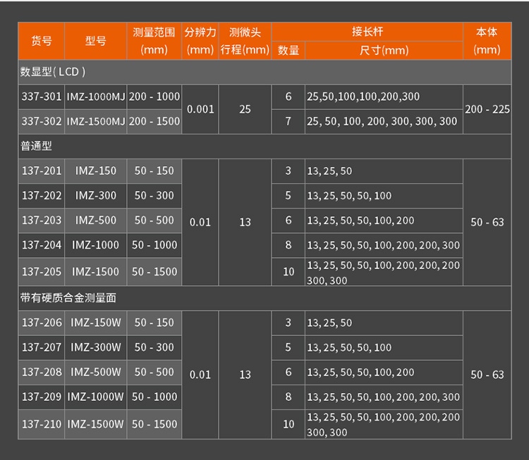 | 137-202/50-300mm/0.01mm/13mm | 其他 | 10 | 13mm | 50-300 | 1040 | 加購詢價(jià) |