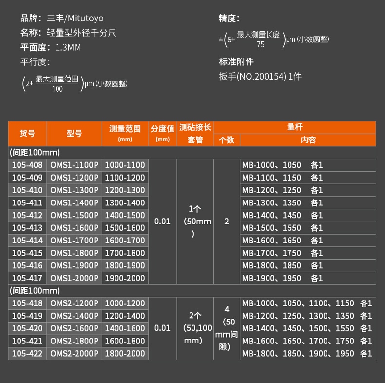 | 105-411/1300-1400mm/0.01mm | 測微螺桿進(jìn)給誤差±0.006 | 硬質(zhì)合金 | 1300-1400 | 0.01 | 加購詢價 |