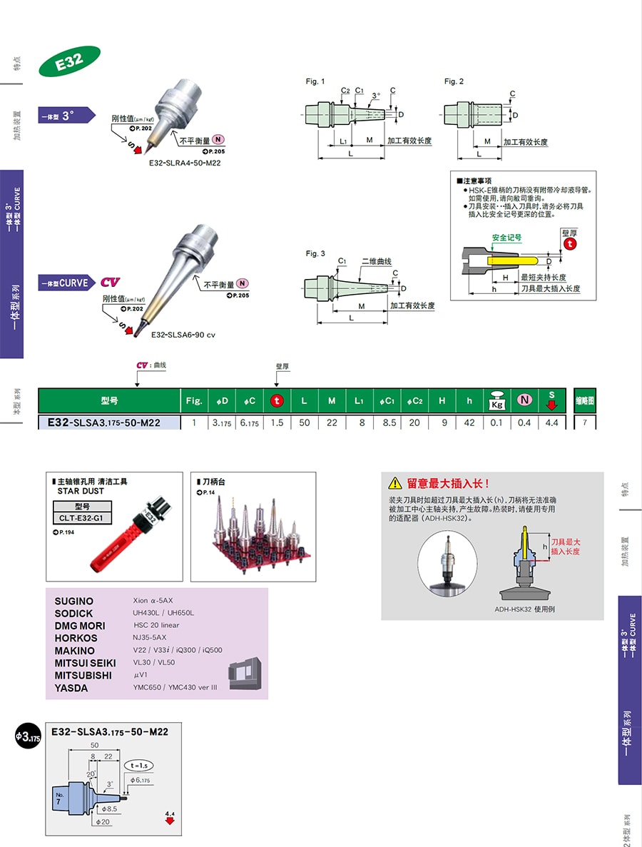 | E32-SLSA3.175-50-M22 | 一體式熱裝刀柄 | E32 | 3.175 | 1.5 | 50 | 22 | 0.1 | 加購詢價 |
